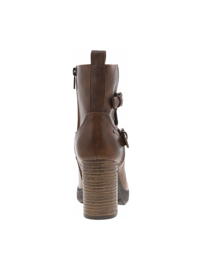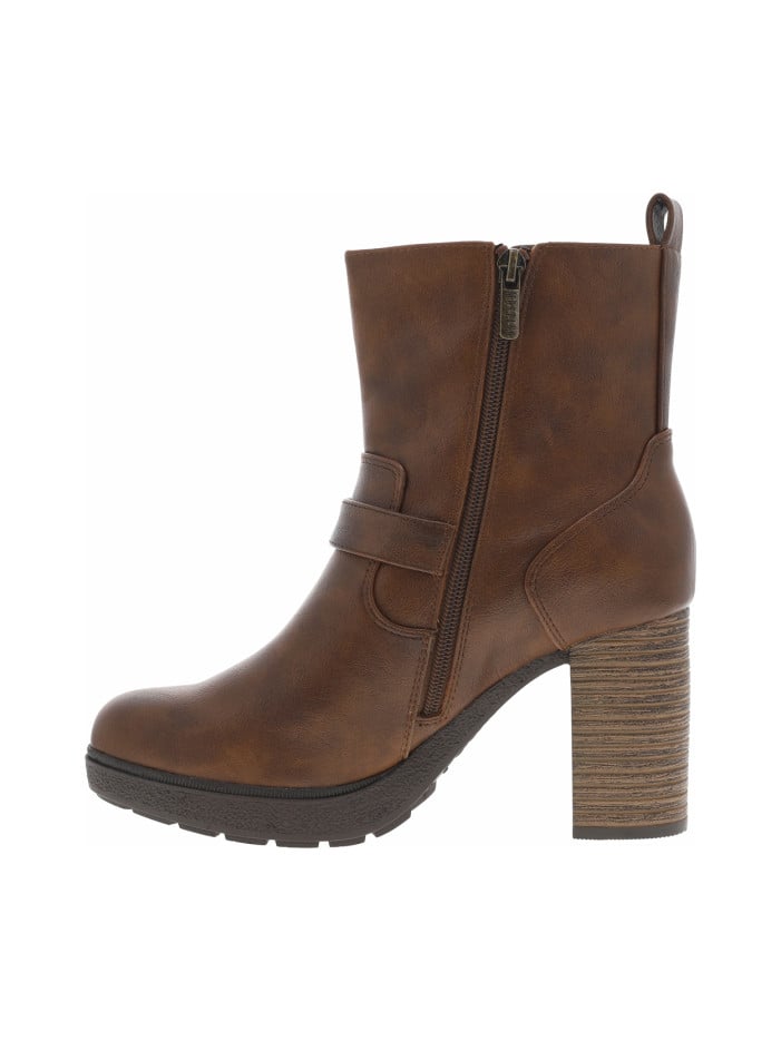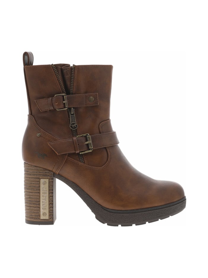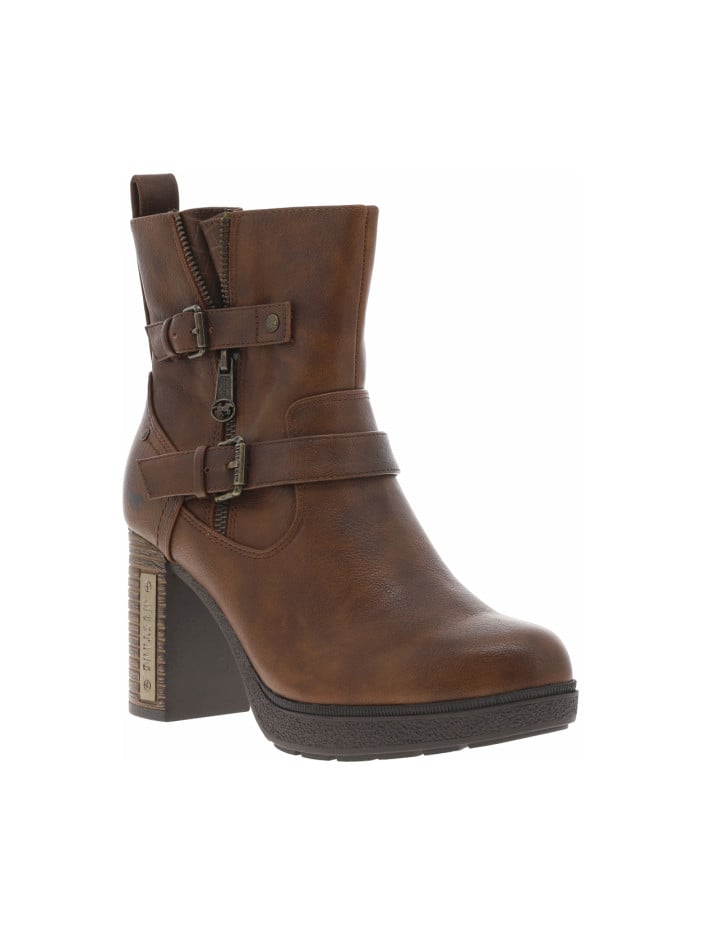 MUSTANG Boots brunes à talon décroché haut avec un zip et soufflet et boucles décoratifs
