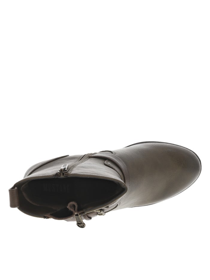 MUSTANG Boots taupe à talon décroché haut et à zip avec boucles et soufflet décoratifs