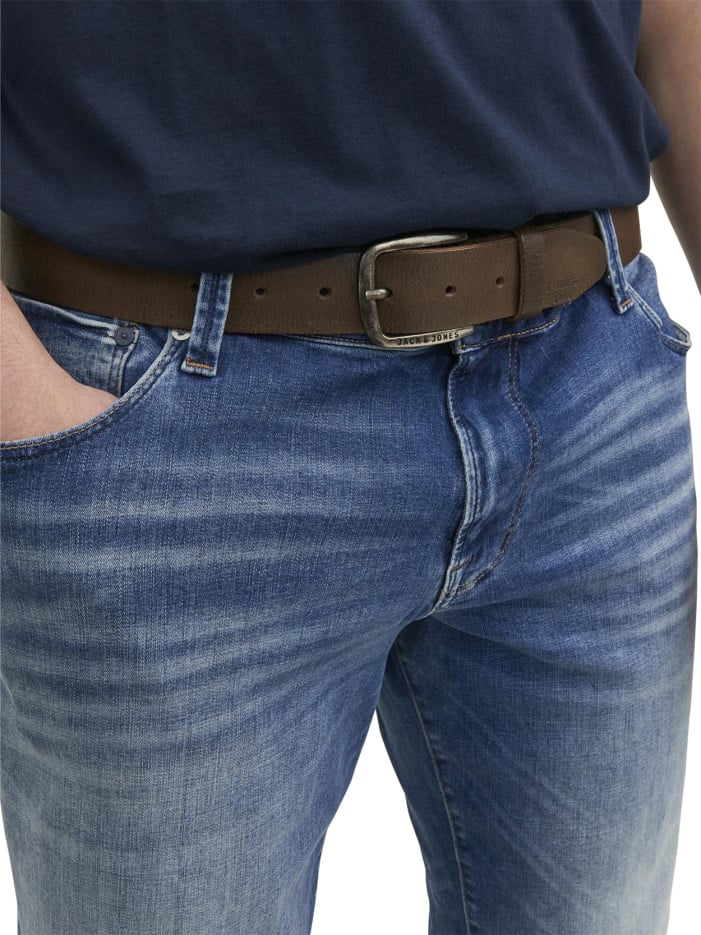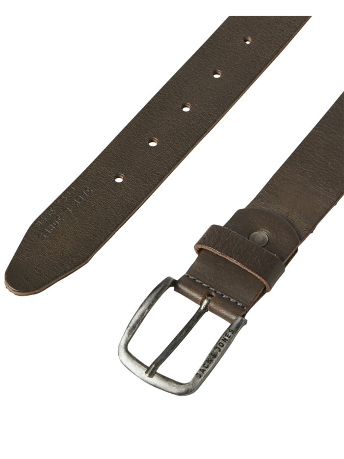 JACK & JONES Ceinture en cuir de buffle chocolat unie avec une boucle argentée rectangle