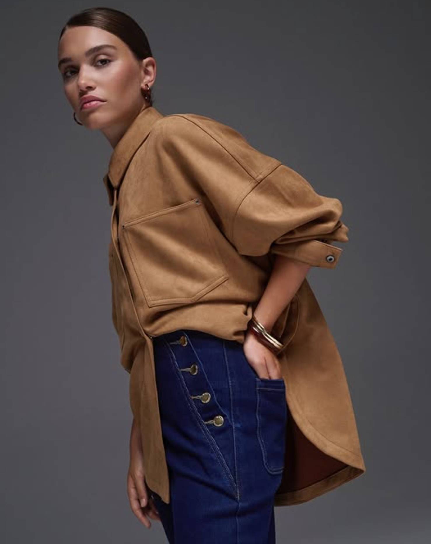 Jupe longue camel unie avec une coupe droite et des passants pour ceinture
