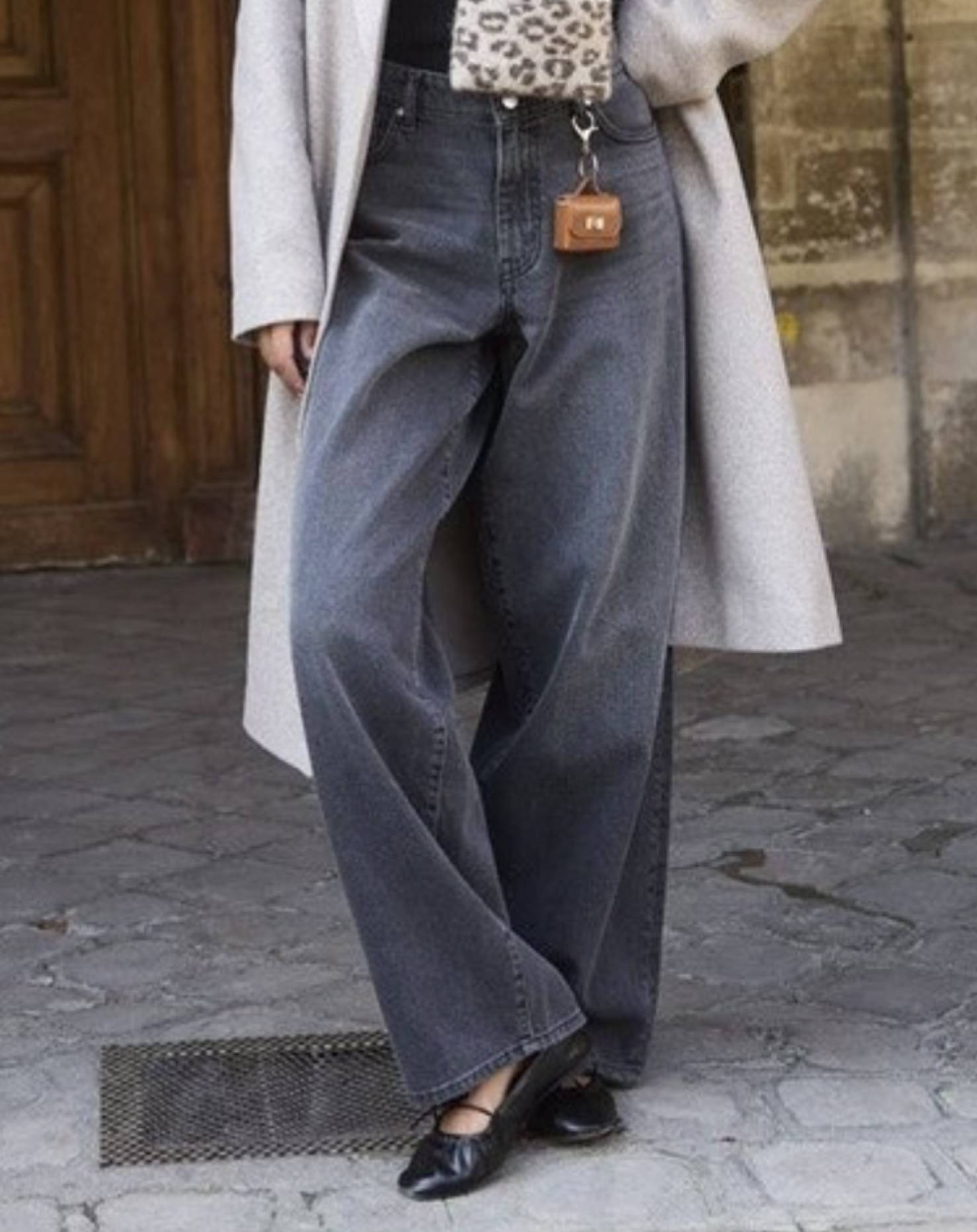 Jean en coton noir avec des passants à la taille et une coupe droite