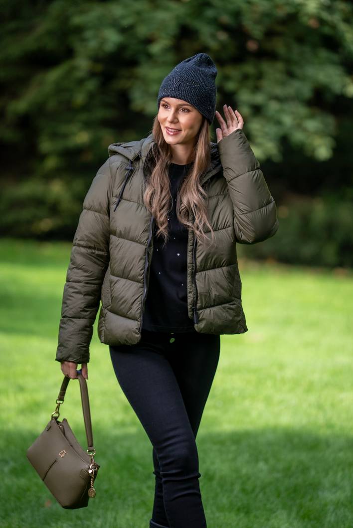 Doudoune kaki unie avec une coupe droite et un col à capuche