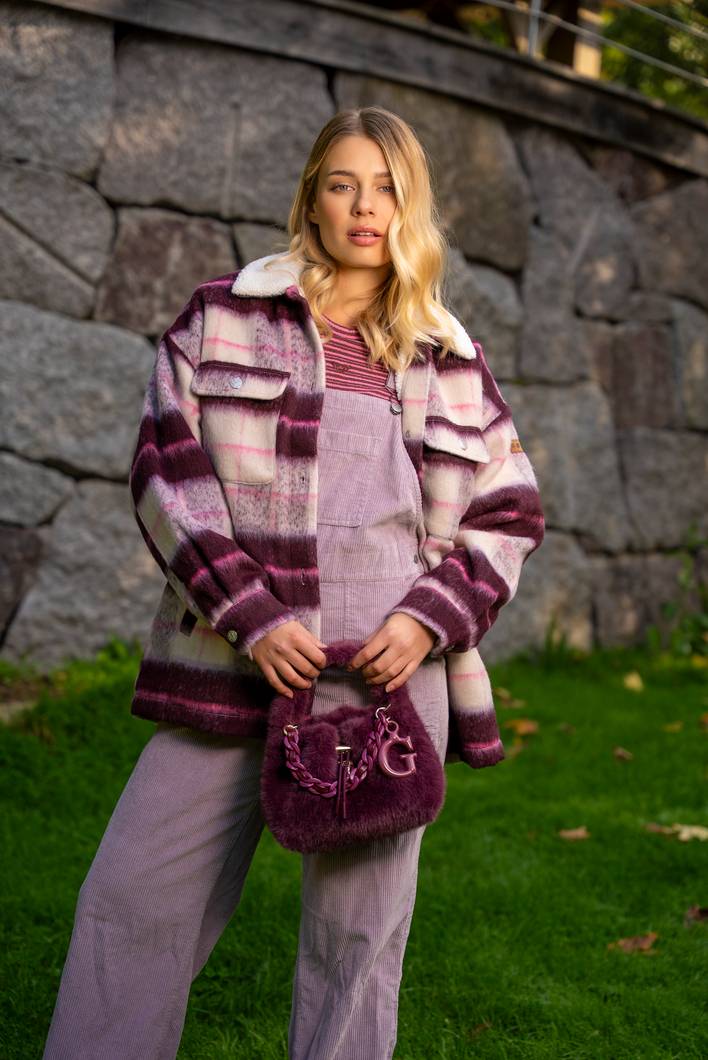 Blouson violet à carreaux avec une coupe ample et un col à revers