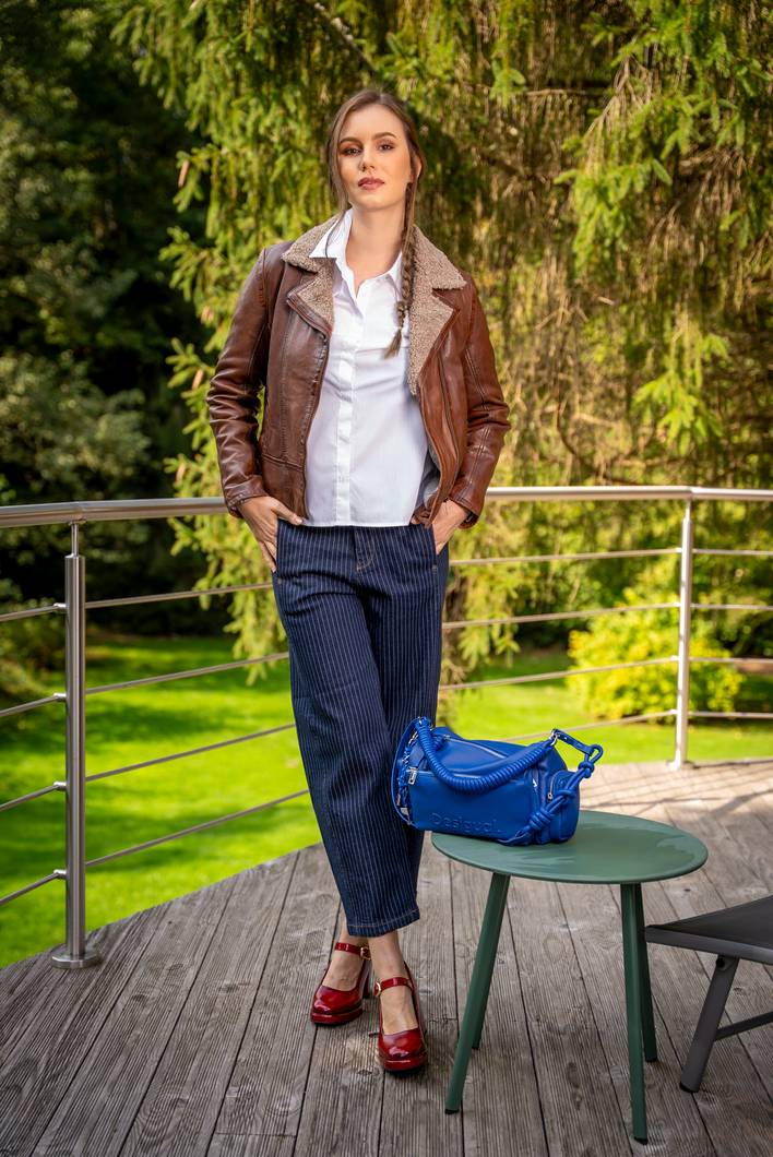 Sac à main porté épaule bleu électrique grainé avec une anse tressée