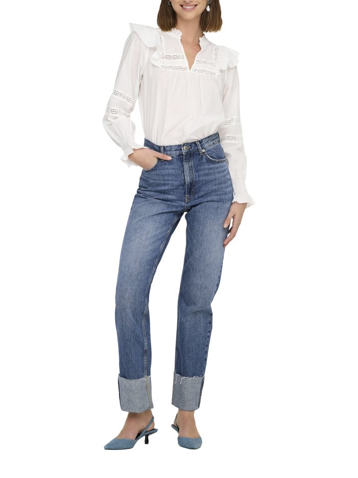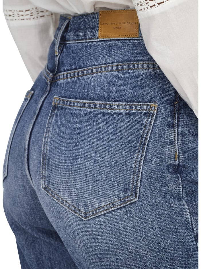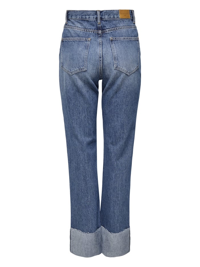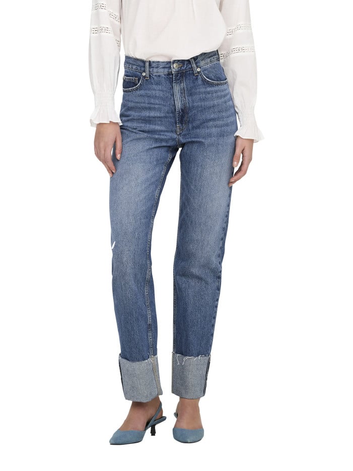ONLY Jean en coton bleu légèrement délavé à coupe regular fit avec des revers
