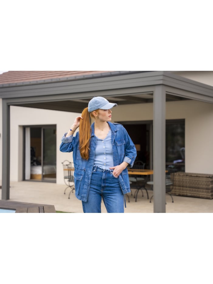• Taille mannequinJeanne mesure 1m73 et porte un jean Only en taille 39. Jeanne complète son look par une veste et un t-shirt Only, une casquette New Era, un sac à dos Cabaïa et des baskets Vans.