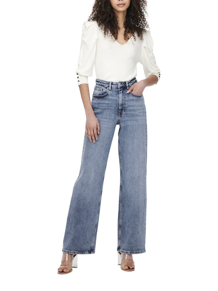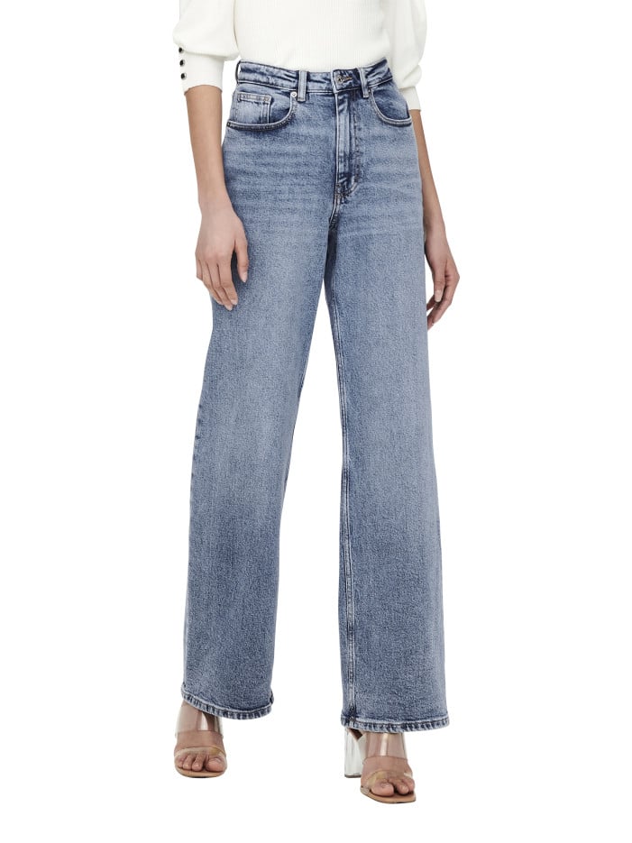 ONLY Jean en coton bleu stone délavé avec une coupe bootcut et une taille haute