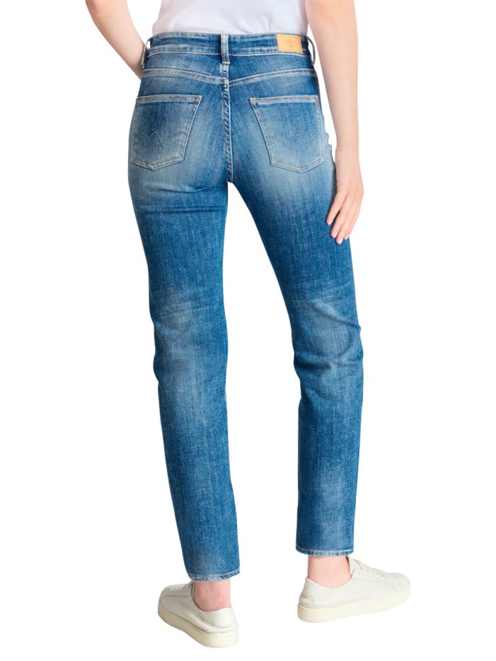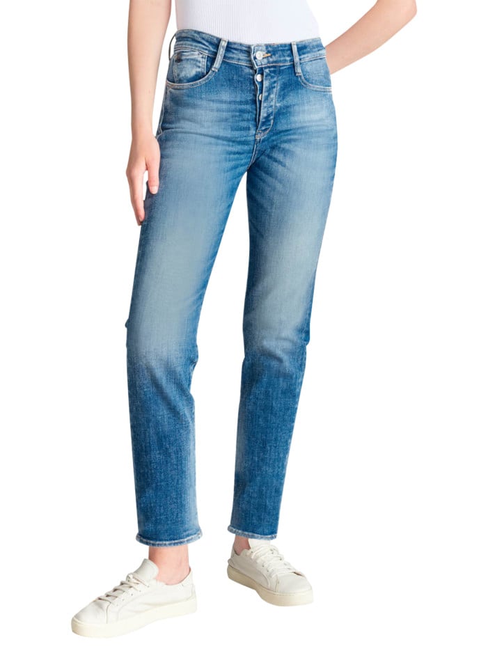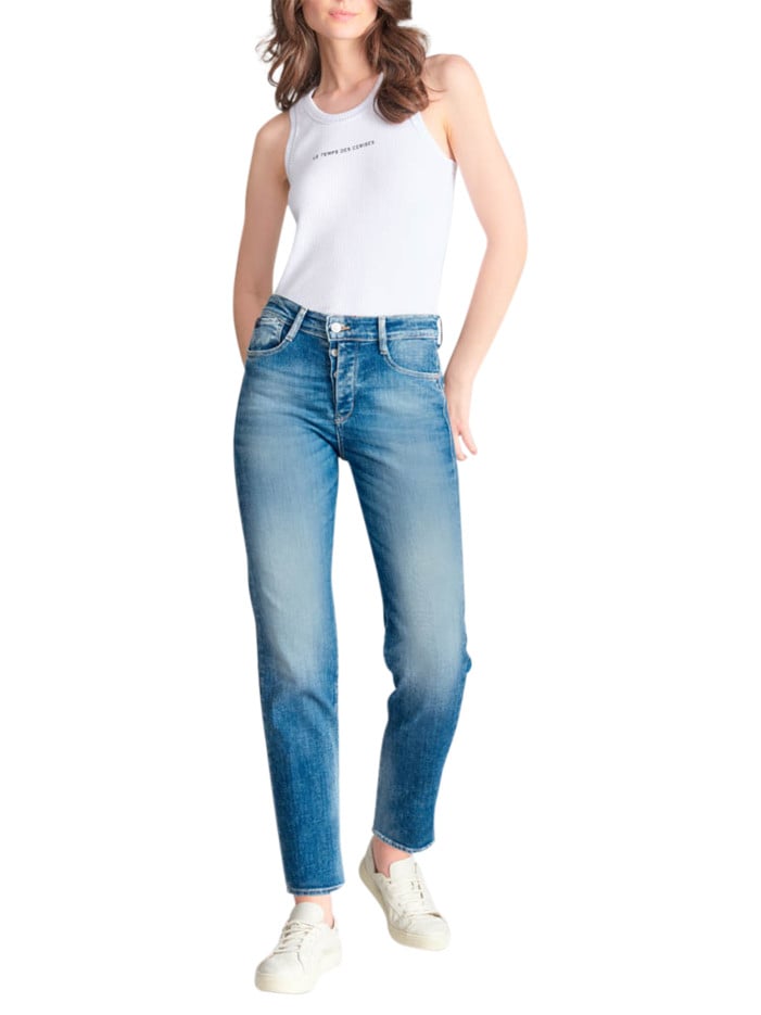 LE TEMPS DES CERISES Jean en coton bleu délavé aux cuisses avec une coupe mom et une taille haute
