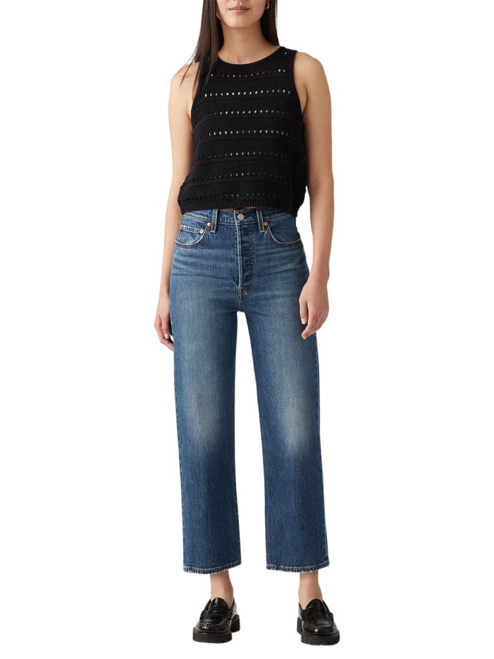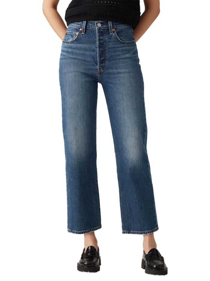 LEVI'S® Jean Ribcage Straight Ankle droit en coton bleu délavé avec rivets cuivrés