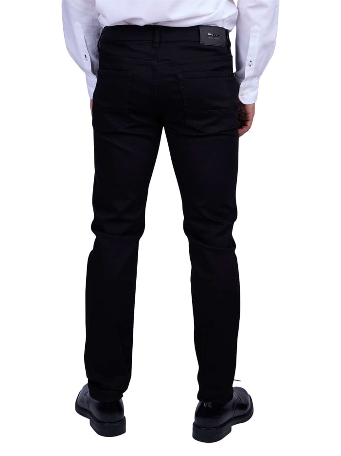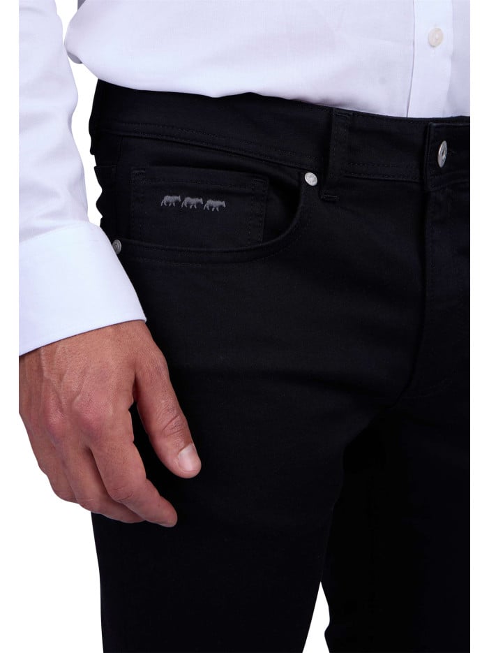 Jean noir uni avec une coupe modern-fit une taille mi-haute et le logo brodé