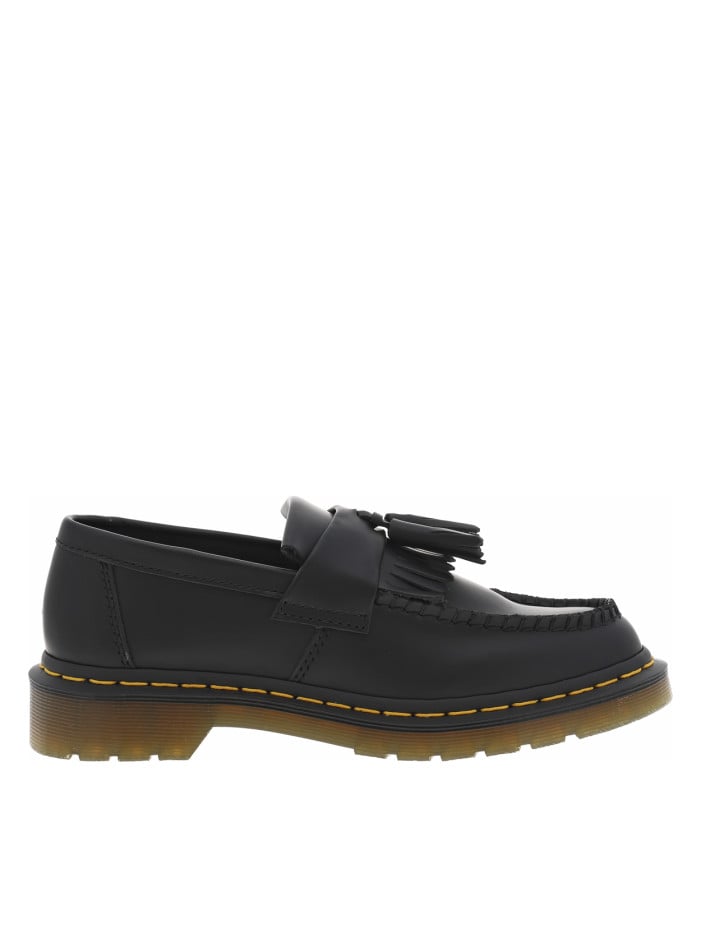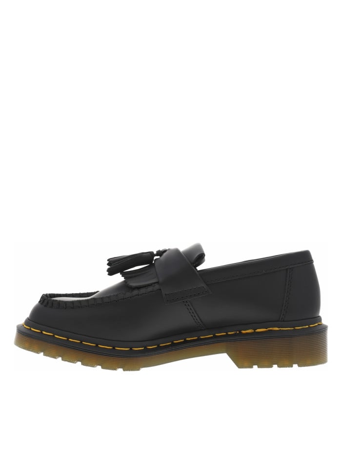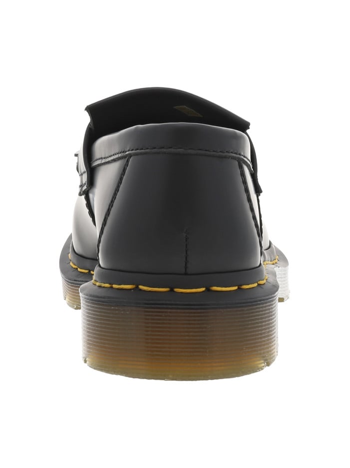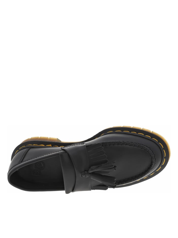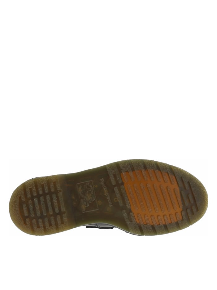Le style des chaussures Dr. Martens est reconnaissable à des kilomètres avec leurs détails uniques : la surpiqûre de couleur jaune entourant la semelle extérieure, la languette noire au talon avec l’inscription jaune « airwair with Bouncing Soles » et la semelle antidérapante rainurée et translucide avec son système de coussin d’air visible.