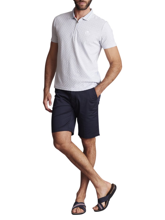 DELAHAYE Polo en coton bleu ciel à petits carreaux à coupe slim et à col à revers zippé