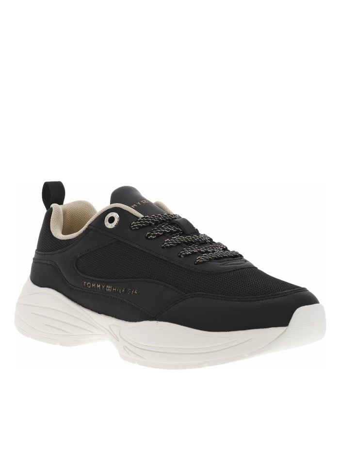 TOMMY HILFIGER Baskets basses running en cuir enduit noires avec lacets plats bicolores