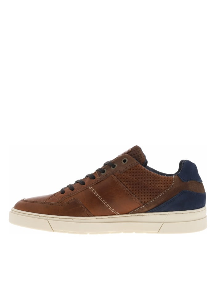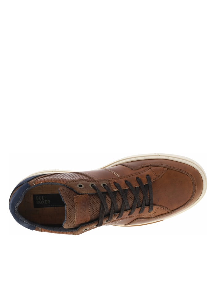 BULLBOXER(H) Sneakers en cuir patiné marron à semelle vulcanisée et lacets plats