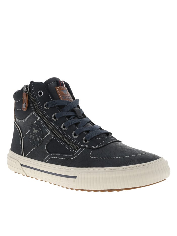 MUSTANG Sneakers bleu marine à talon plat avec des lacets et un zip latéral