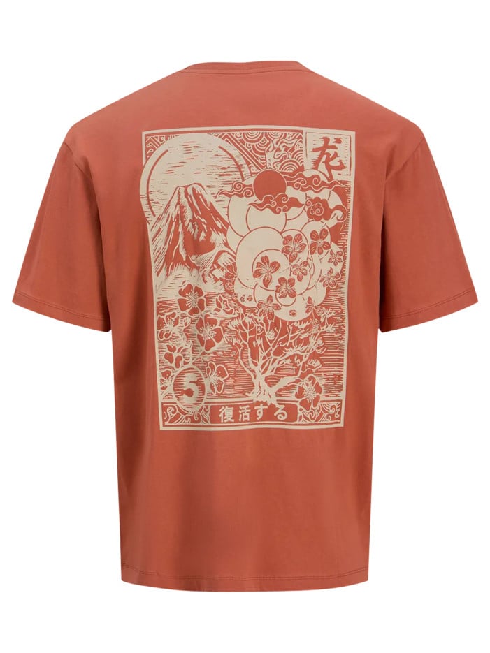 JACK & JONES T-shirt en coton orange avec imprimé japonais au dos, coupe droite et col rond