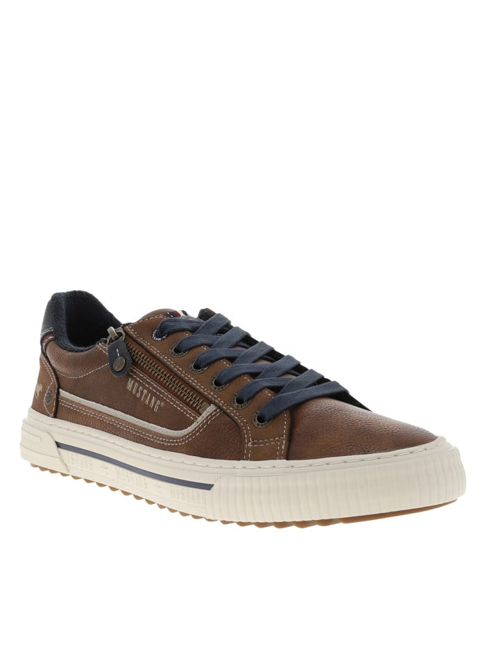 MUSTANG Tennis marron à talon plat avec des lacets et un zip latéral