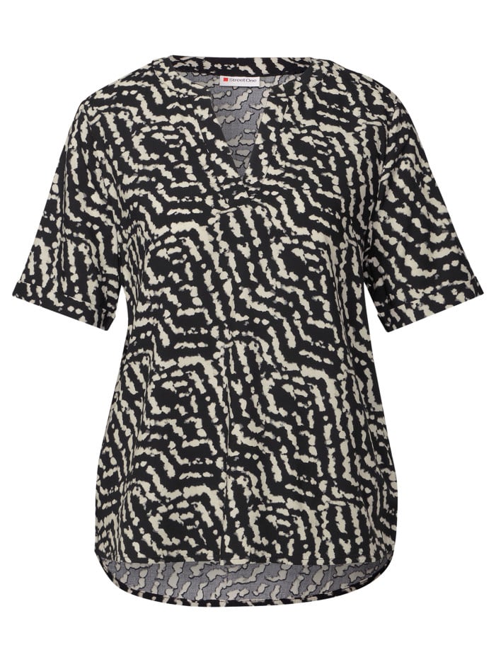 STREET ONE Blouse manches courtes noire à imprimés écrus avec un col v et une coupe droite